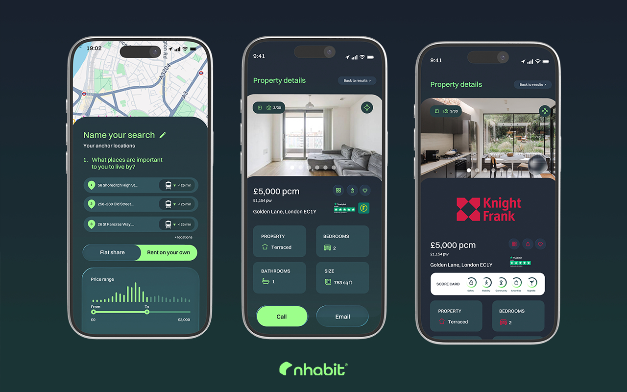 nHabit is a deep AI powered platform that, unlike traditional postcode-based portals, rethinks property search for its users around real life needs (work, study, social and exercise) then uses real-time travel times, lifestyle fit and amenity scores to suggest the right neighbourhoods and properties. Powered by Milo, a proprietary large language model connected to a three-dimensional graph database, nHabit allows renters to describe their lifestyle requirements, commute preferences, safety concerns, and amenity needs in conversational terms. Estate agents and BTR developers can partner with nHabit for free to reach a community of high-quality, pre-qualified tenants through a highly personalised swipe-based experience.