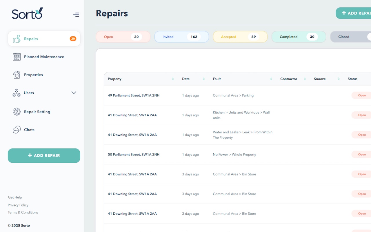 Sorto is a cloud-based platform that helps letting agents, block managers and housing providers manage property repairs and maintenance in one place. It streamlines tenant reporting, contractor coordination and job tracking, helping property teams reduce admin, respond faster to issues and maintain clear records across every property and unit.
